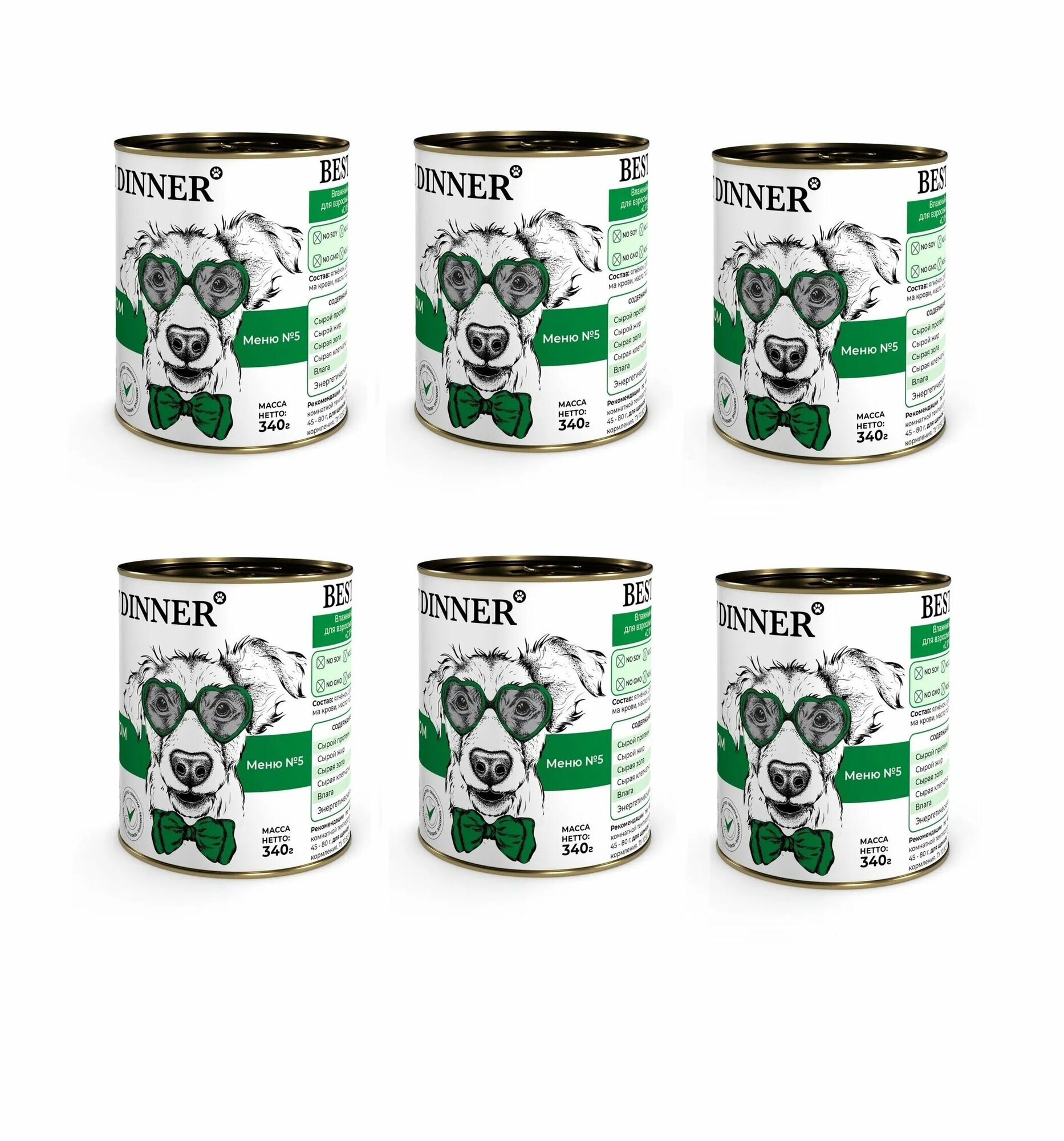 Корм для собак BEST DINNER Premium Меню №5 ягненок с рисом банка 340г (упаковка - 12 шт)