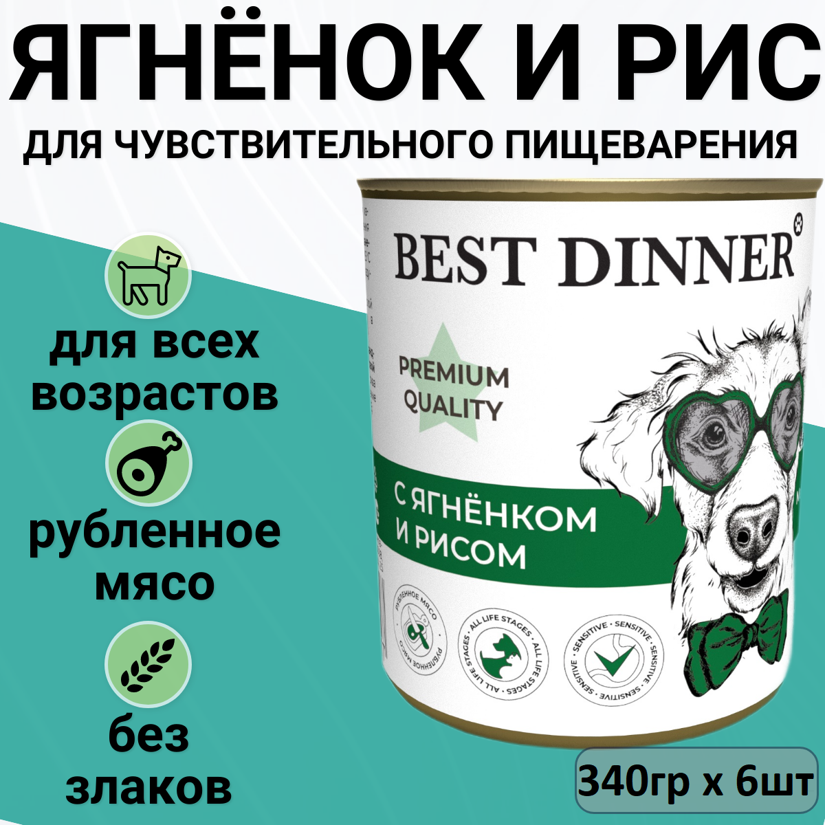 корм для собак Best Dinner ягненок, с рисом 1 уп. х 12 шт. х 340 г
