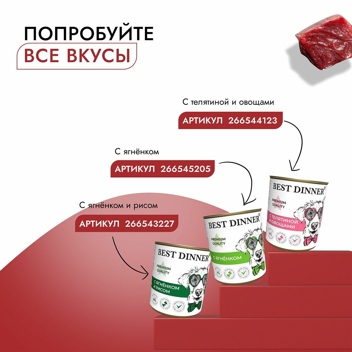 BEST DINNER PREMIUM меню № 3 для собак и щенков с говядиной и кроликом (340 гр х 12 шт)