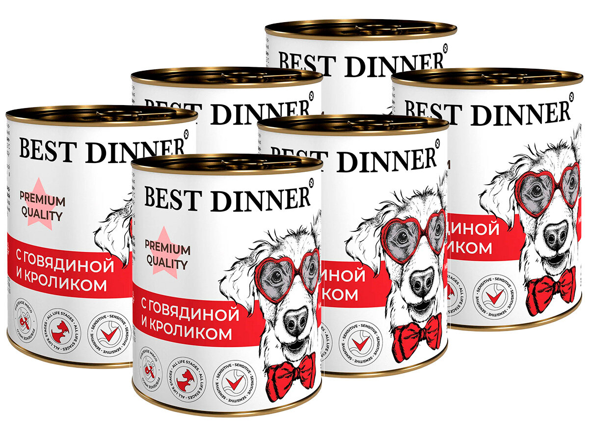 Влажный консервированный корм Best Dinner Бест Диннер для собак Premium Меню №3, говядина, кролик, 340 гр. по 6шт.