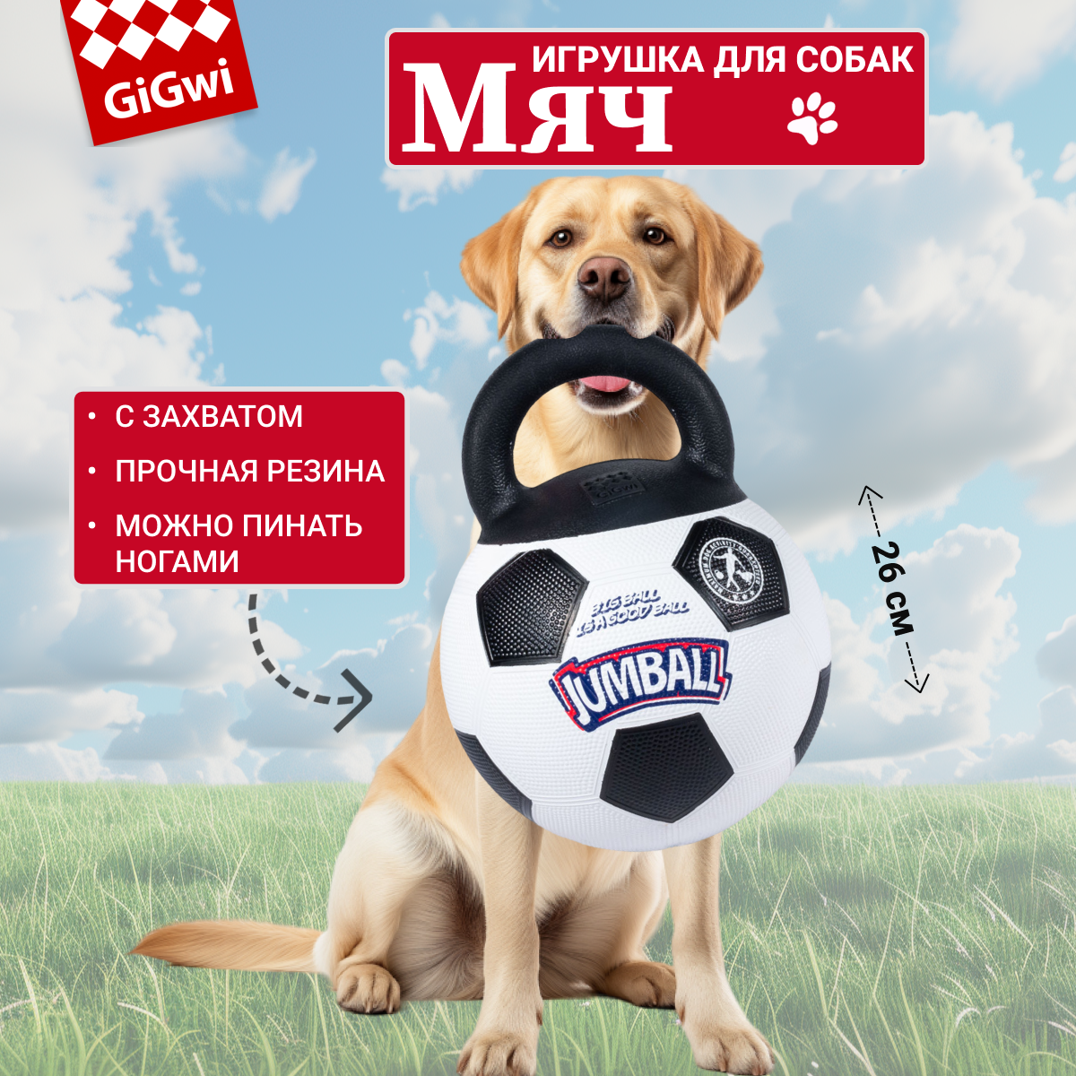 Купить GiGwi JUMBALL игрушка для собак средних и крупных пород мяч футбольный c ручкой, белый, 26 см