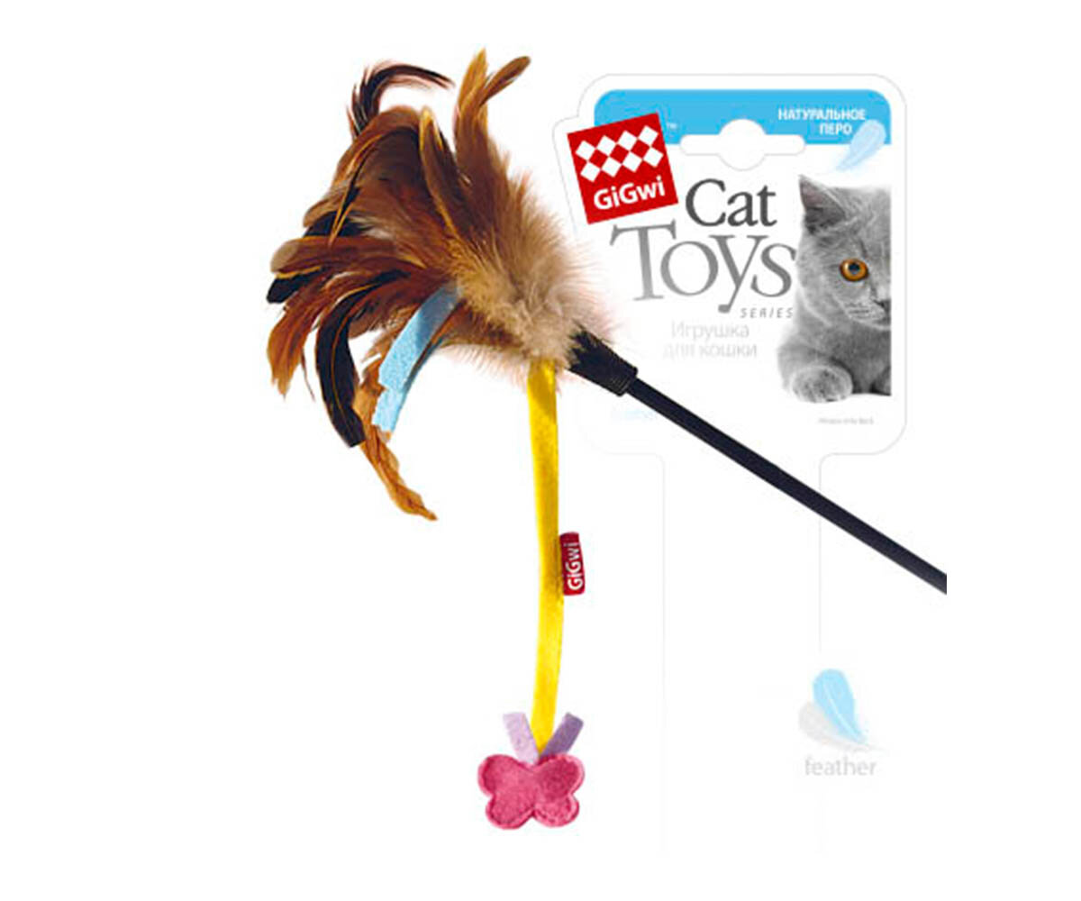 GiGwi Игрушка для кошек Дразнилка с бабочкой и перьями