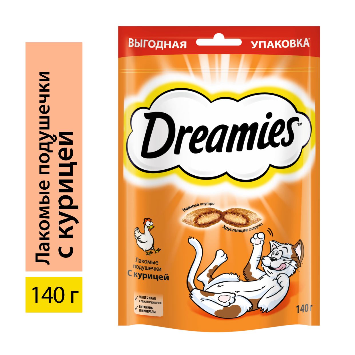 Dreamies лакомые подушечки с курицей для взрослых кошек и котов всех пород - 140 г