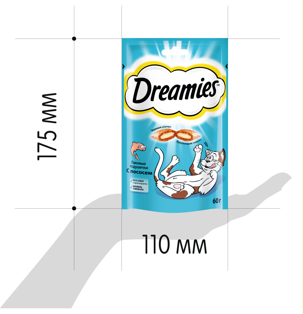 Dreamies лакомство для кошек, подушечки с лососем (6шт в уп) 60 гр