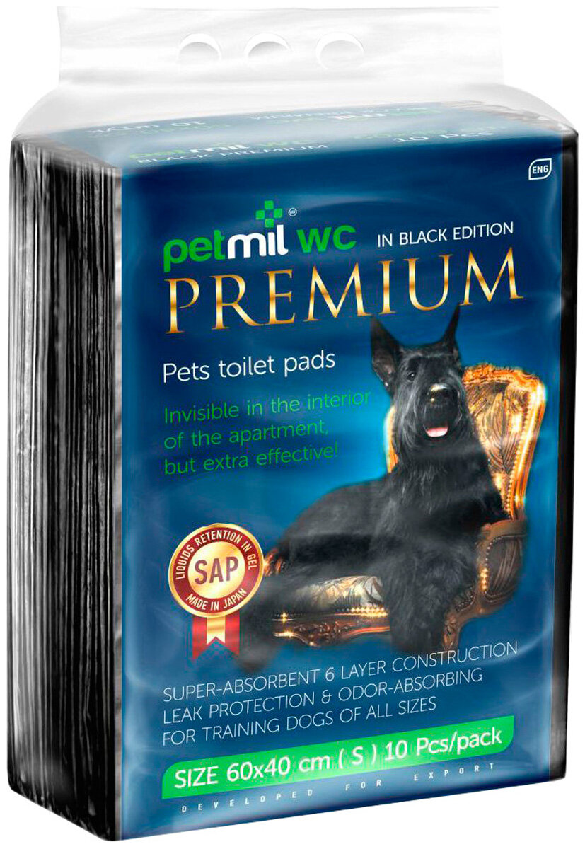 PETMIL Пеленки BLACK Premium впитывающие гелевые, 60х40 см (в наборе 10 шт)