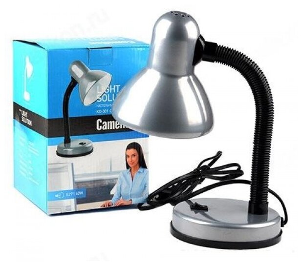 Лампа офисная Camelion Light Solution KD-301 C03, E27, 60 Вт, цвет арматуры: серебристый, цвет плафона/абажура: серебристый
