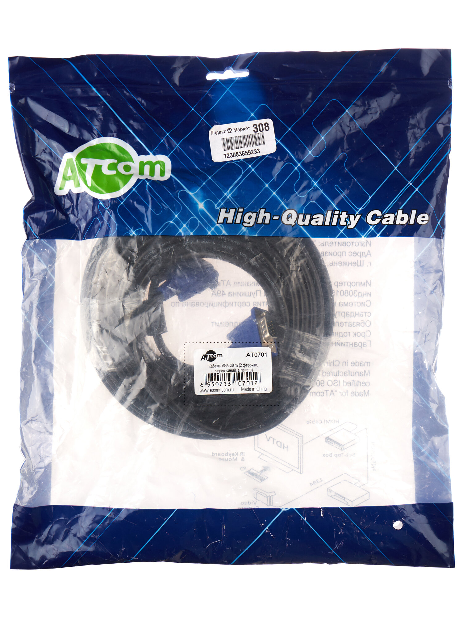 Кабель VGA 20 m ATCOM AT0701 (2 феррита, черно-синий, в пакете), 1080P