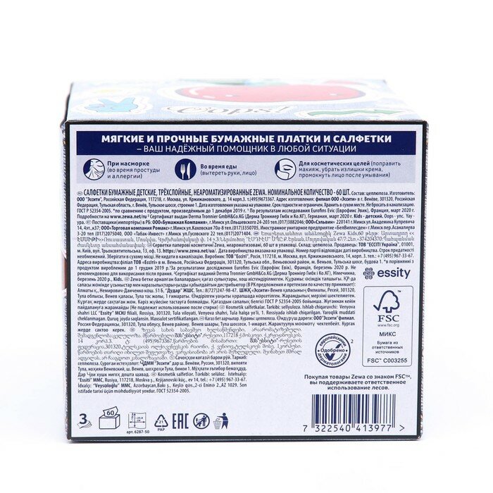Салфетки Zewa Kids, 60 шт. интересное: