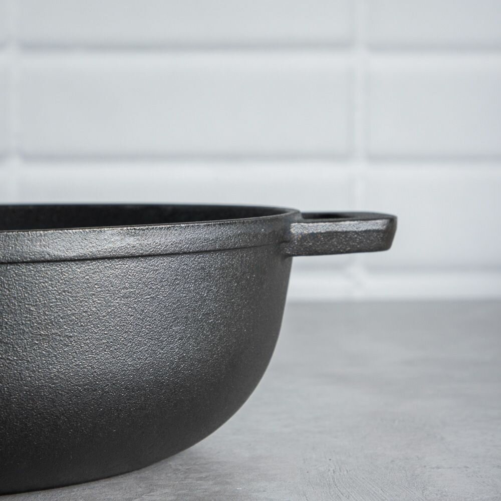 | Плюсы: | Глубокая, чугунная, с крышкой. |