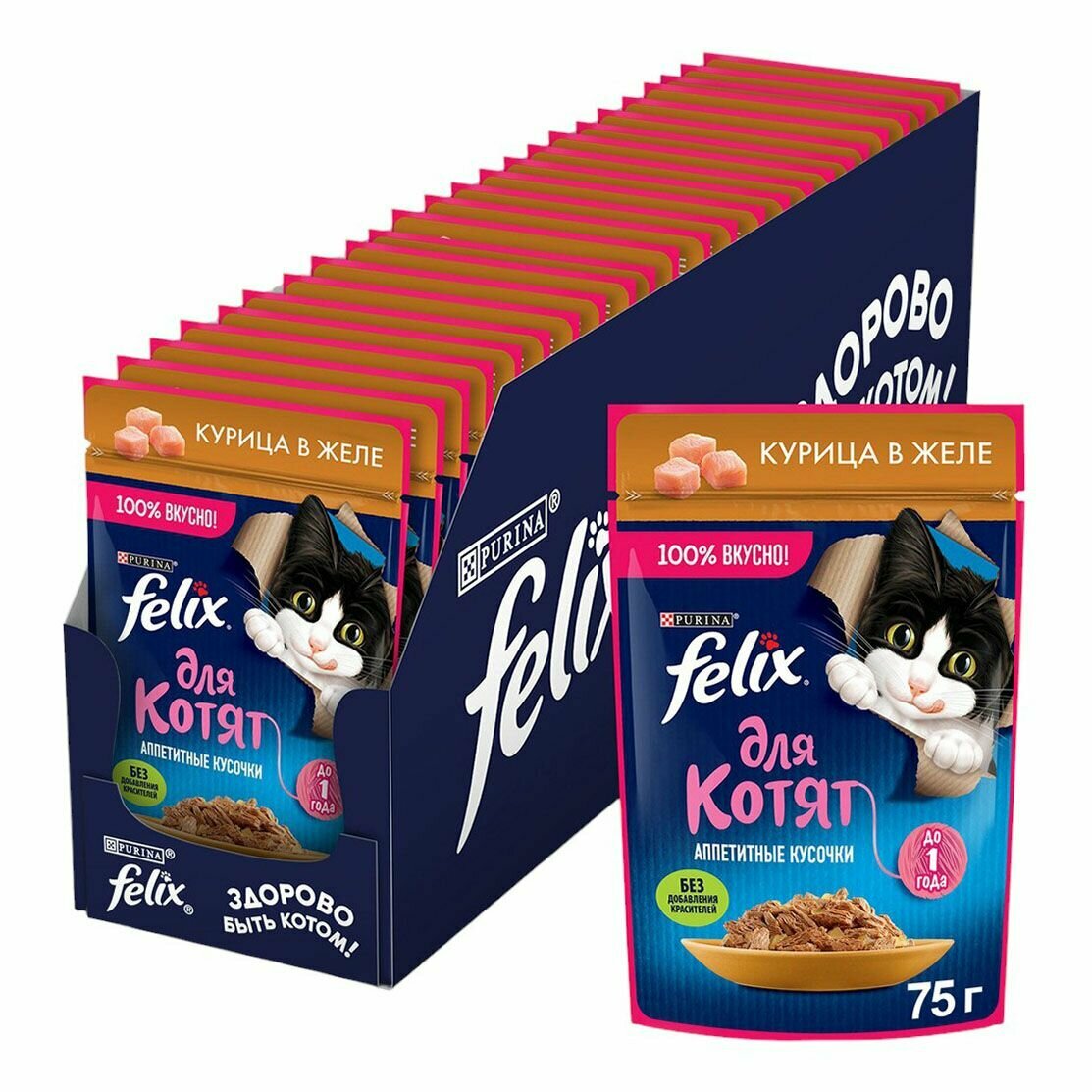 СохранитьFELIX Влажный корм Аппетитные Кусочки для котят с курицей в желе 75 г х 26 интересное: