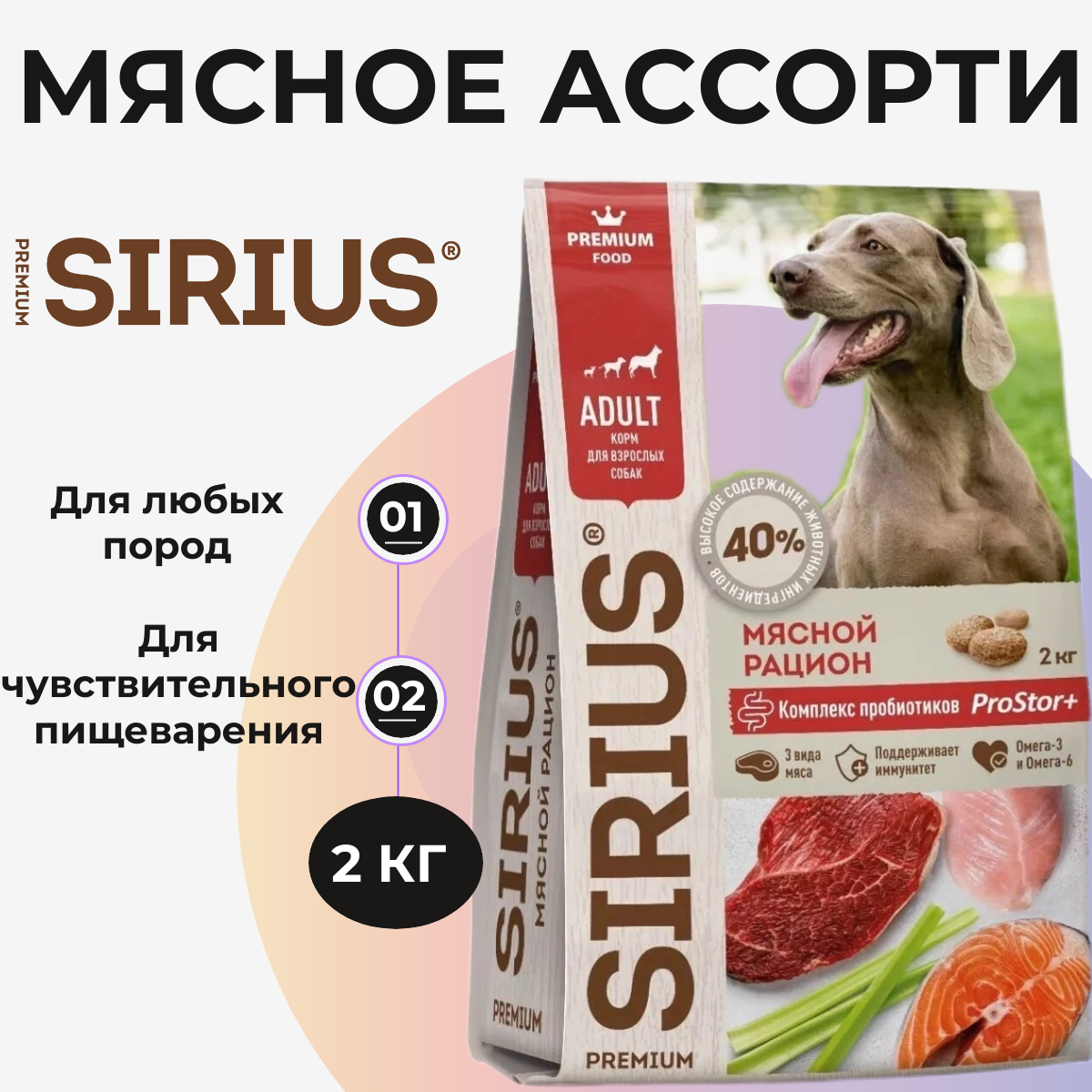 Сухой корм для взрослых собак Sirius 2кг Мясной рацион/Сириус