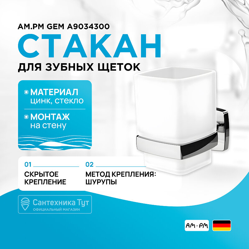 СохранитьСтеклянный стакан с настенным держателем Am.pm Gem, A9034300 интересное: