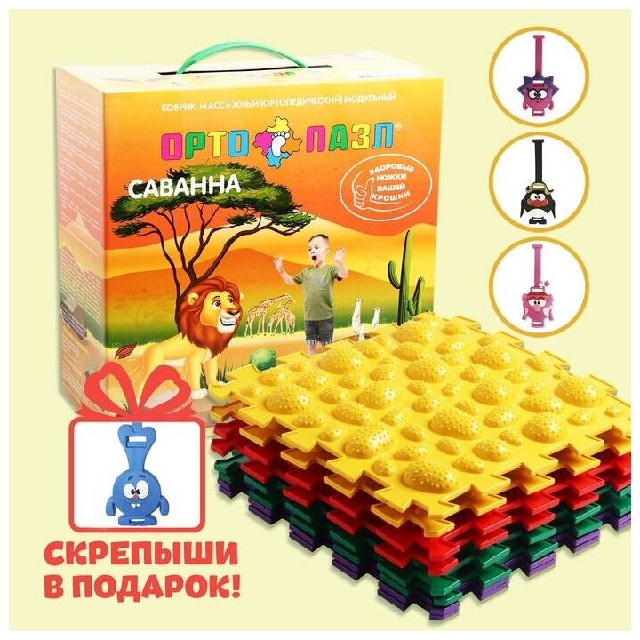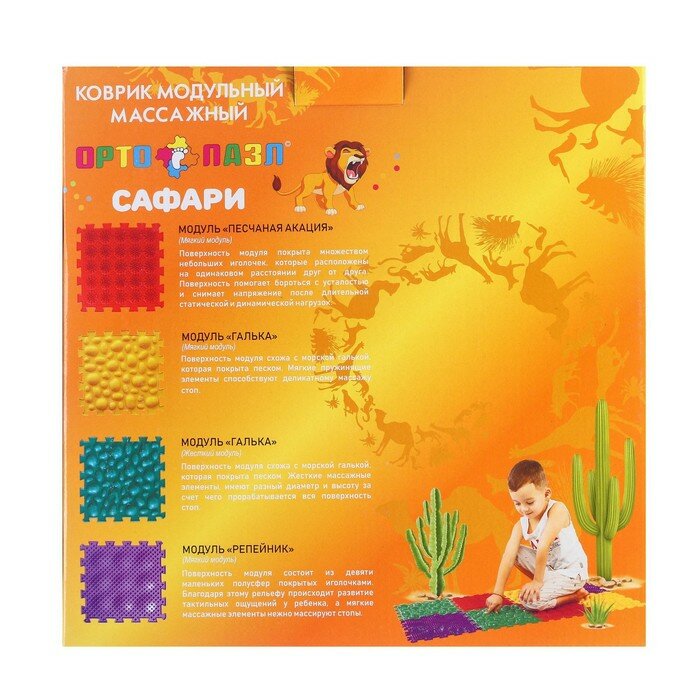 Купить ОртоПазл Модульный массажный коврик ОРТО пазл «Сафари», 8 модулей, 4 вида