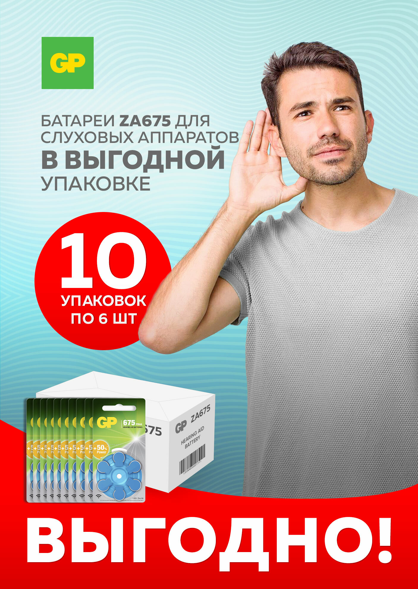 Батарейка GP Hearing Aid ZA675, 6 шт.