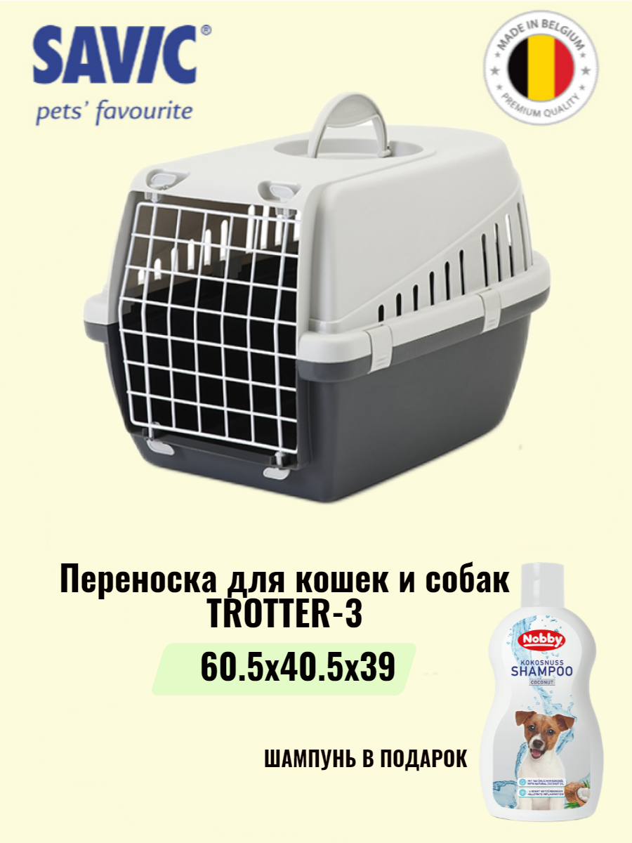 Переноска для кошек и собак Savic "Trotter-3", пластик, металл, 60,5х40,5х39 см