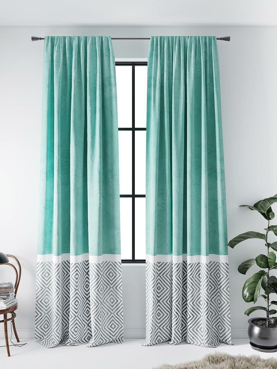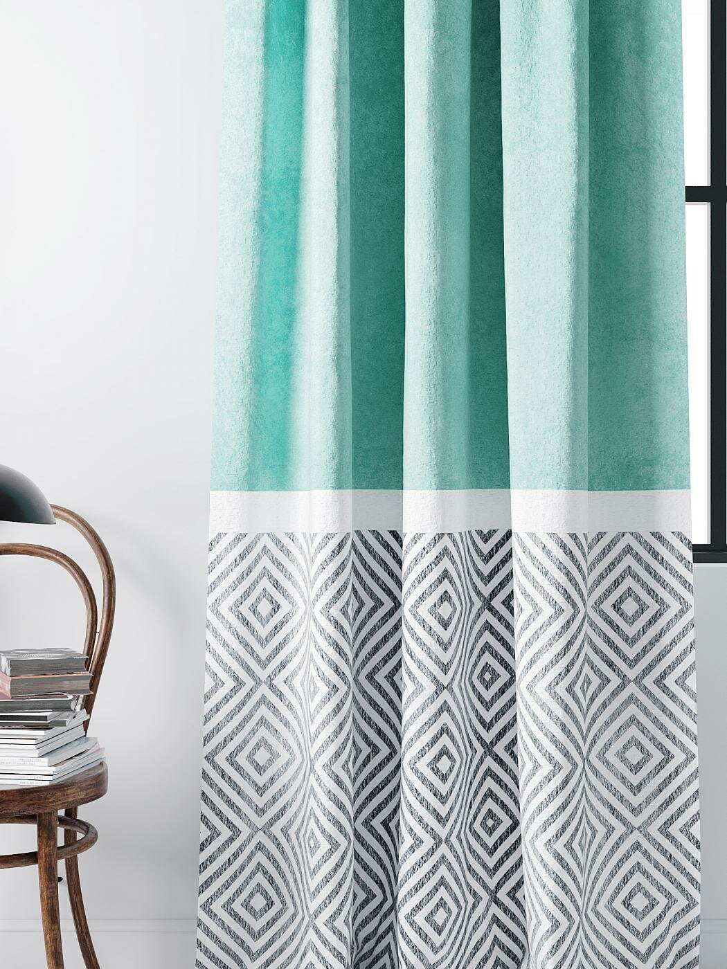 Комплекты штор AT HOME Ритронти (бирюза) высота 280 см, ширина 150 см, крепление - шторная лента, Белый интересное: