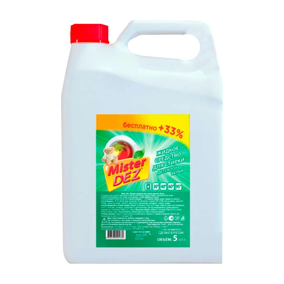 Купить Гель для стирки детского белья Mister DEZ, гипоаллергенный, антибактериальный, эко, 5 л