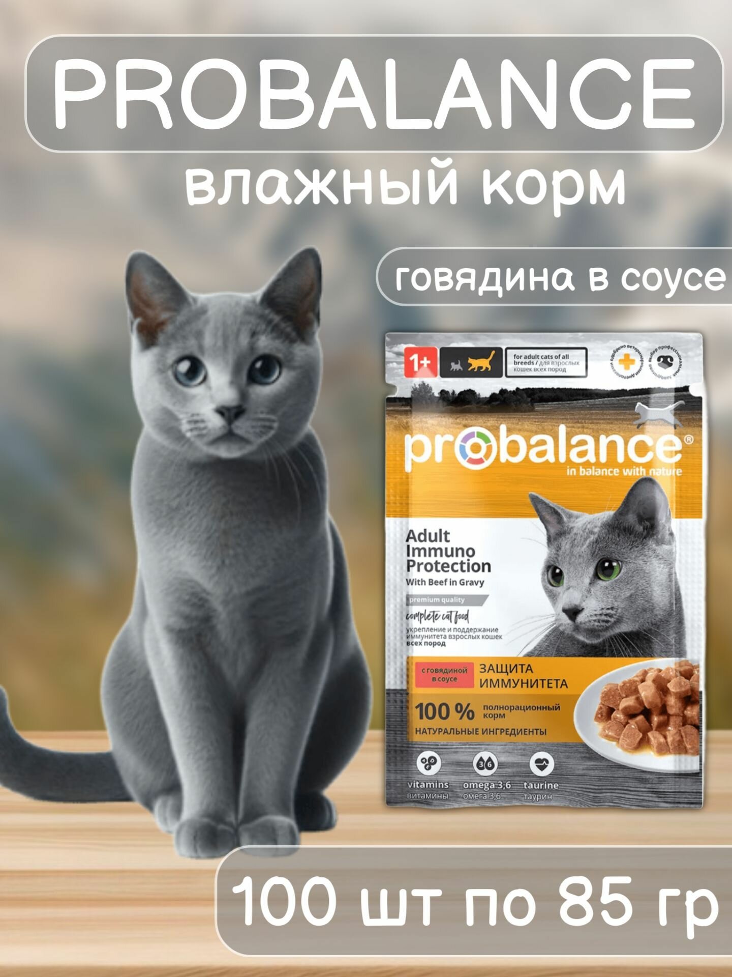 PROBALANCE CAT IMMUNO PROTECTION для взрослых кошек с говядиной в соусе (85 гр)