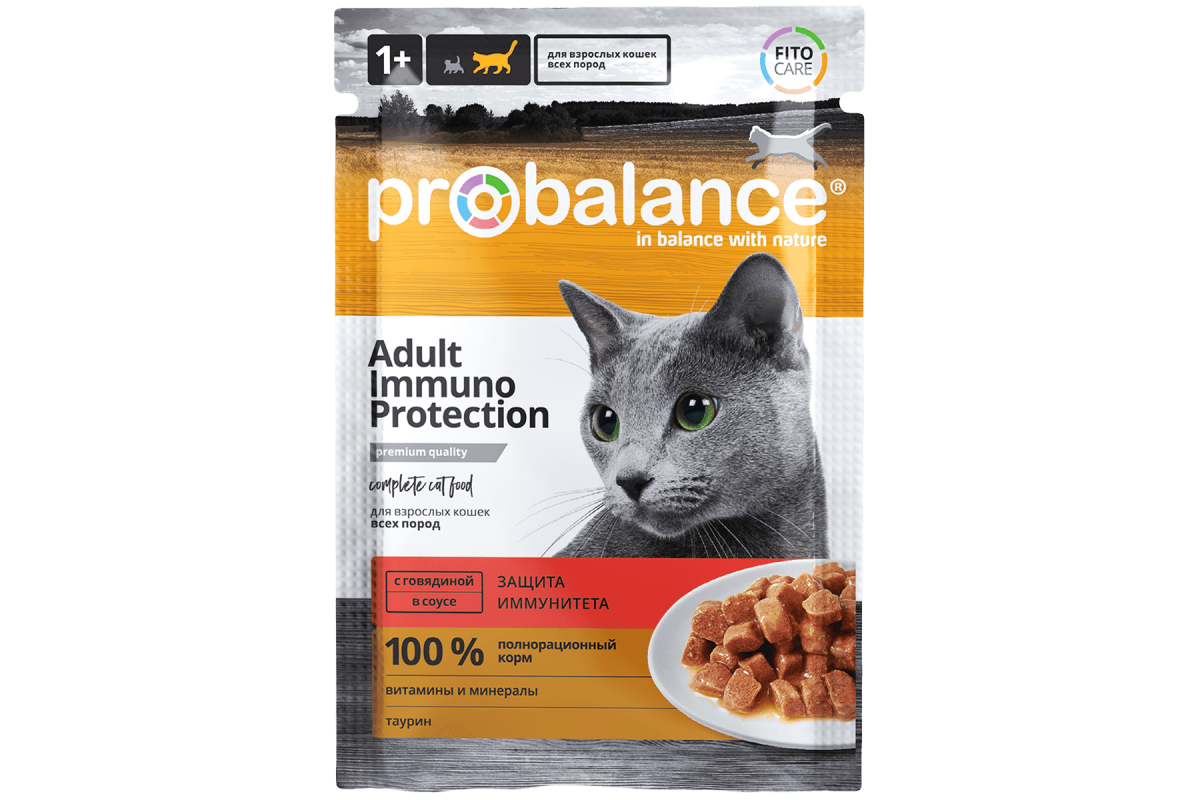 PROBALANCE CAT IMMUNO PROTECTION для взрослых кошек с говядиной в соусе (85 гр)