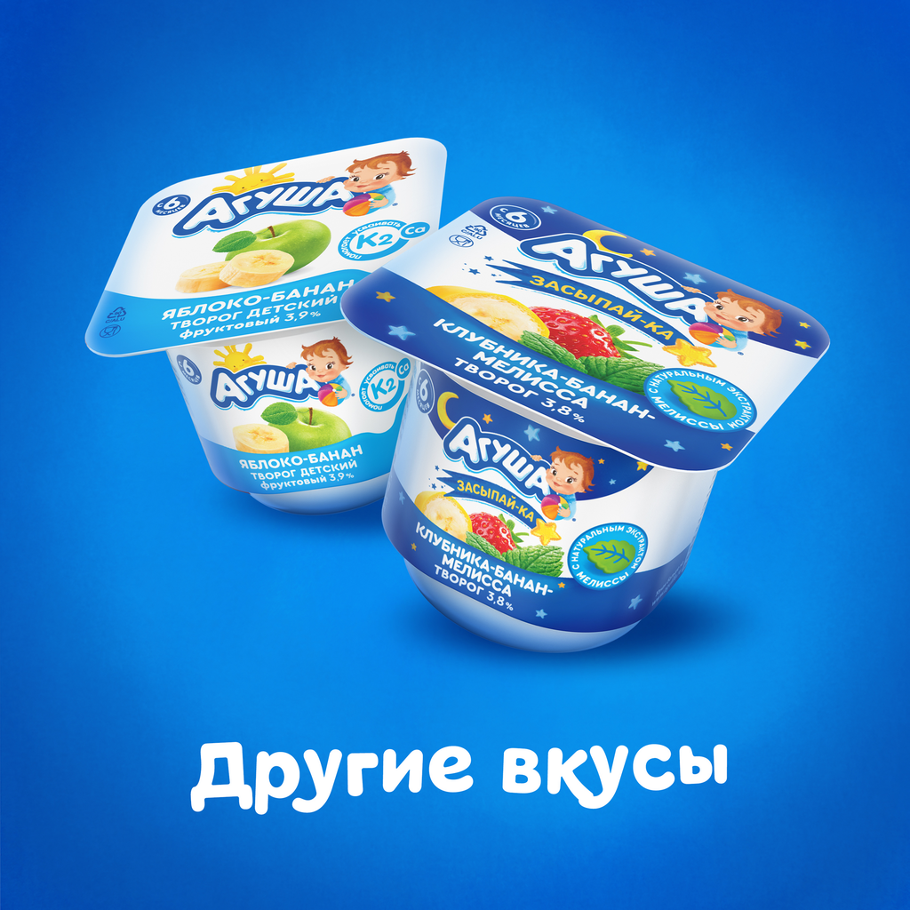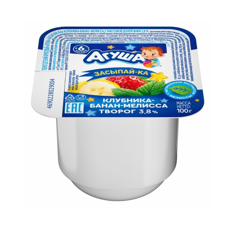 Творог для детей агуша Засыпай-ка Клубника, банан, мелисса 3,8%, без змж, 100г интересное: