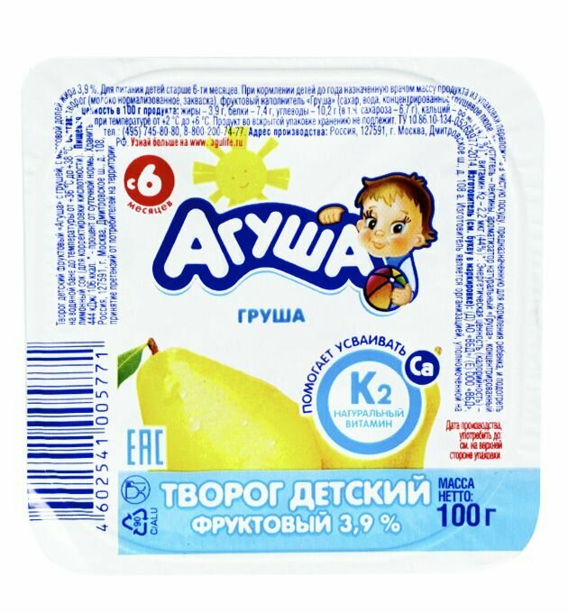 Творог для детей агуша Груша 3,9% с 6 месяцев, без змж, 100г интересное: