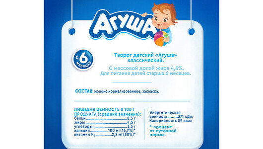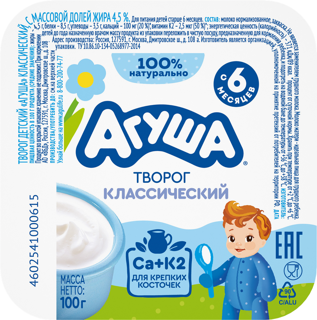 Творог классический для детей агуша 4,5% с 6 месяцев, без змж, 100г интересное: