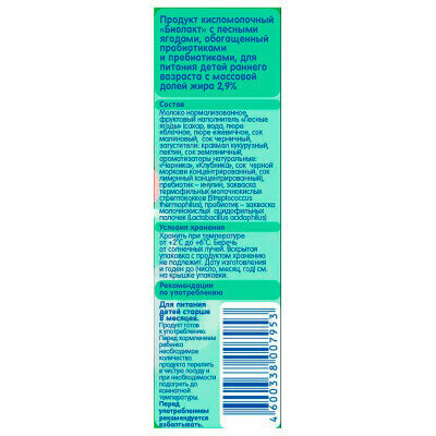 Биолакт фрутоняня с лесными ягодами 2,9%, без змж, 200г интересное: