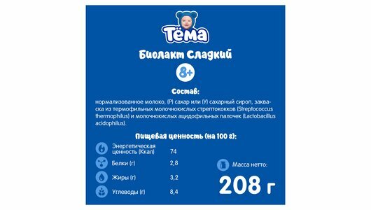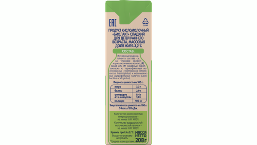 Биолакт для детей тема 3,2%, без змж, 208г интересное: