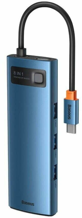 СохранитьHUB адаптер BASEUS Metal Gleam Series 8-in-1 Multifunctional, Type-C to USB3.0*3+PD 100W+HDMI 4K+SD/TF+RJ45, Cиний, WKWG000103 интересное: