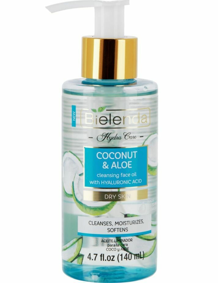 Bielenda Hydra Care Масло легкое очищающее для умывания лица Кокос и Алоэ для сухой кожи, помпа 140 мл