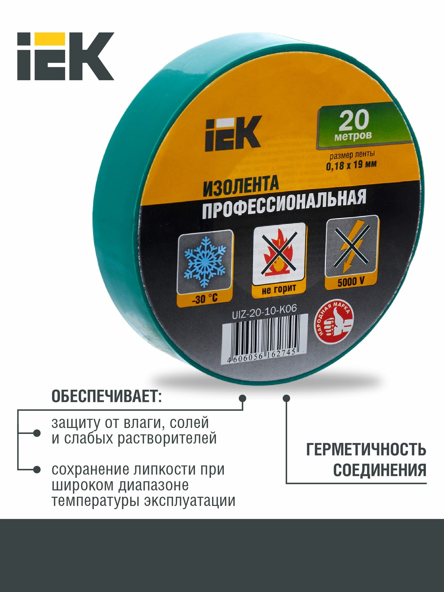 Изолента ПВХ зеленая 19мм 20м / IEK; арт. UIZ-20-10-K06; оригинал