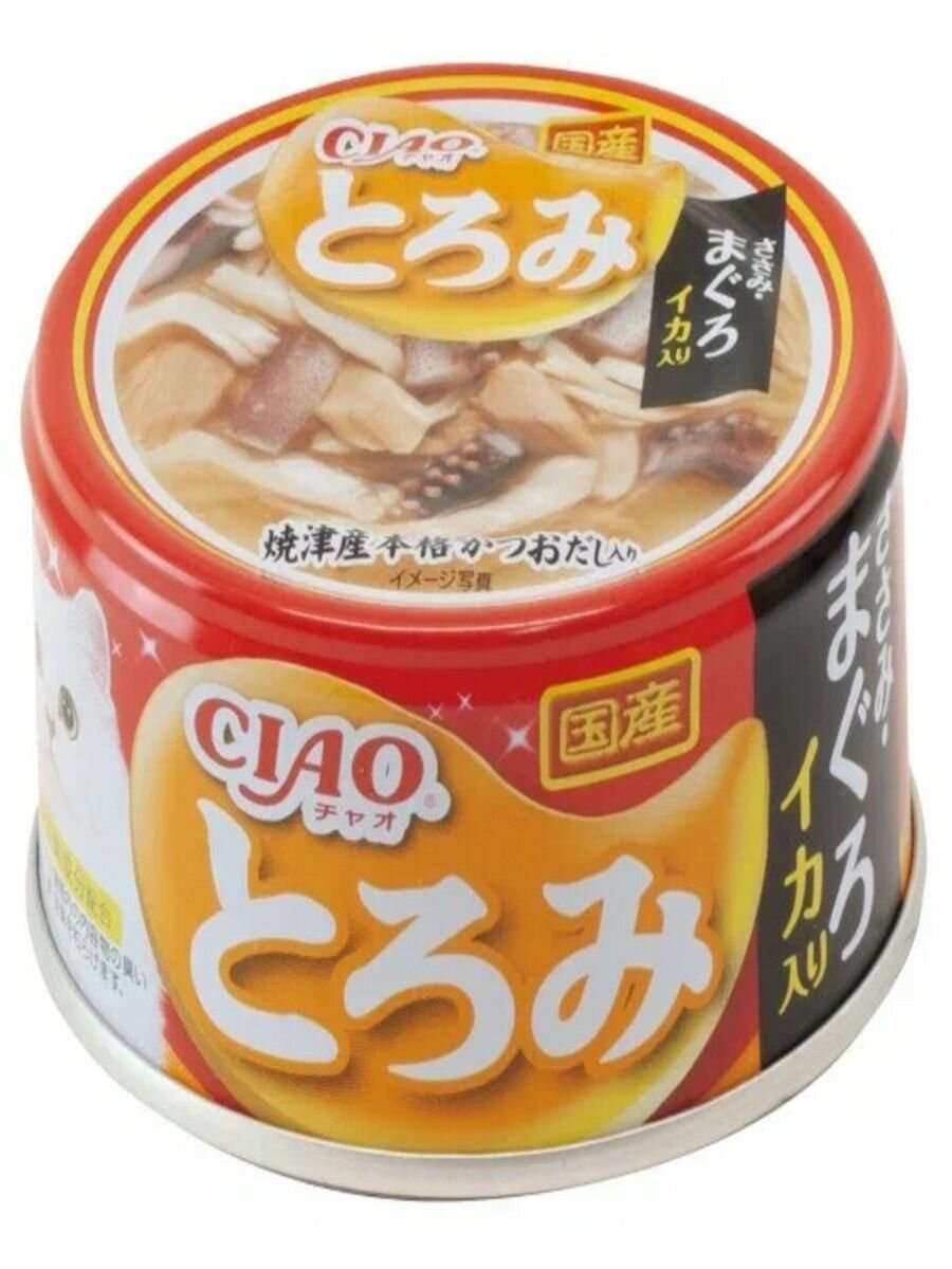 Inaba Ciao Toromi консервы для взрослых кошек с куриным филе, тунцом магуро и кальмаром, в бульоне - 80 г х 24 шт