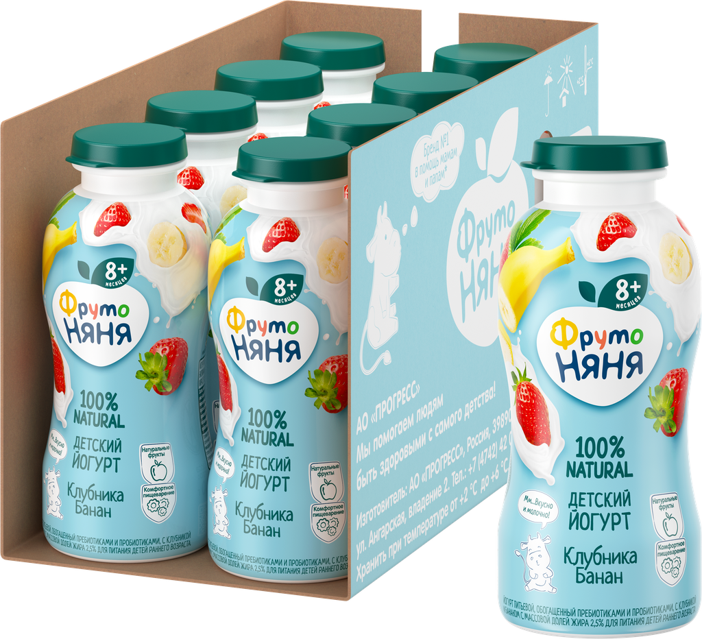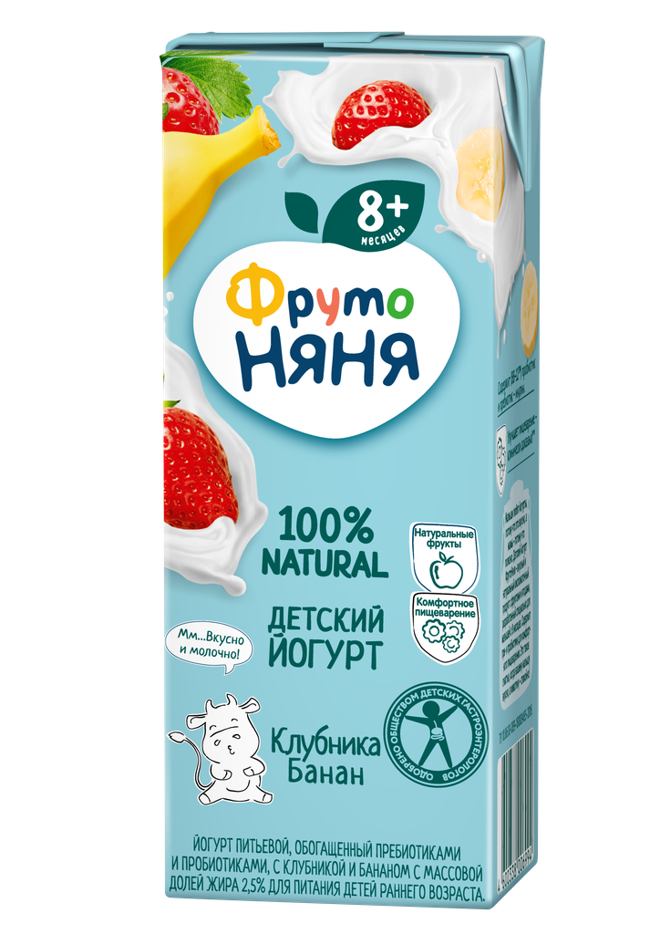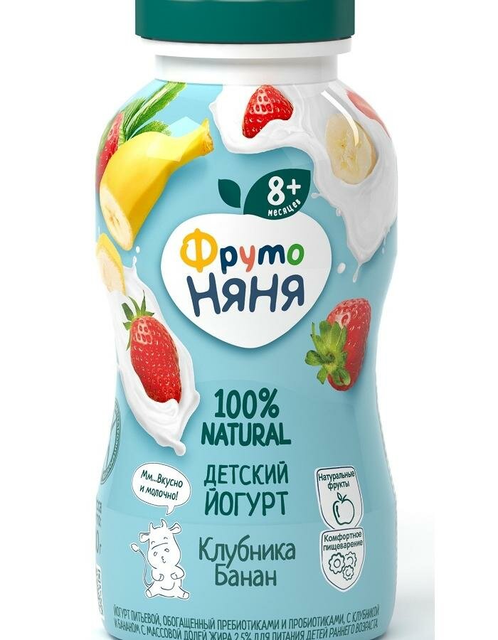 Йогурт питьевой фрутоняня Клубника, банан для детского питания 2,5%, без змж, 200мл интересное:
