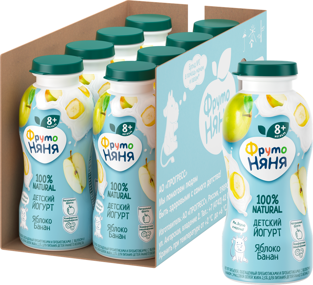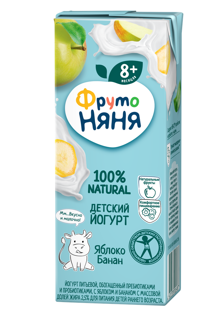 Йогурт питьевой фрутоняня Яблоко, банан для детского питания 2,5%, без змж, 200мл интересное:
