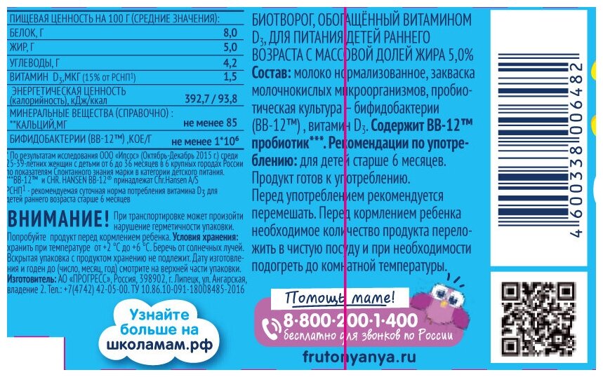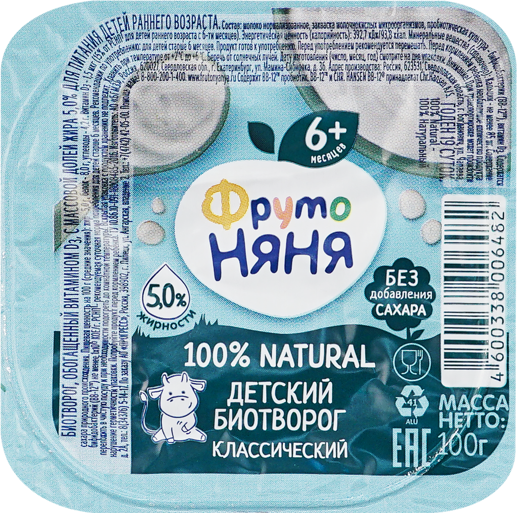 Биотворог для детского питания фрутоняня Классический с 6 месяцев, без змж, 100г интересное: