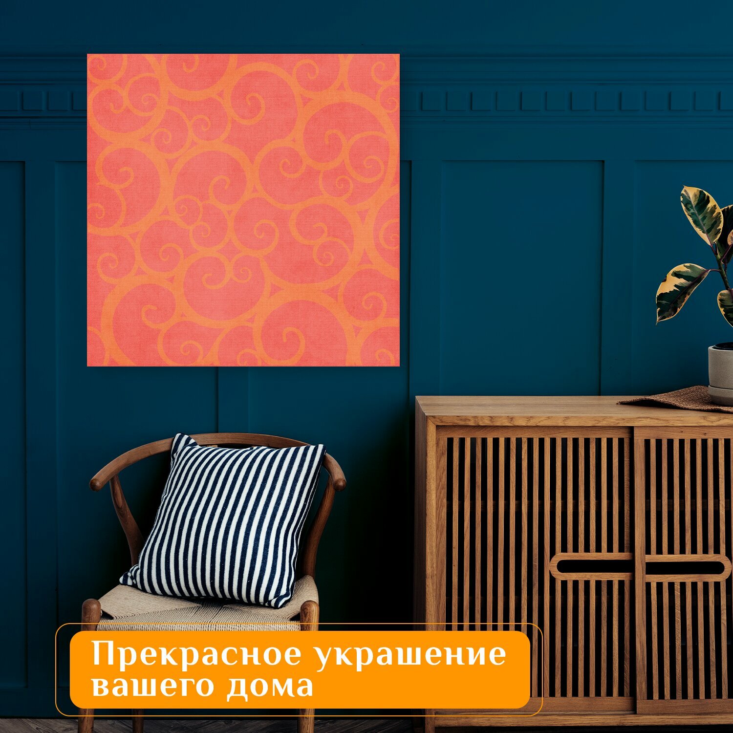 Картина на холсте "Персик, розовый, кудри" на подрамнике 75х75 см. для интерьера интересное: