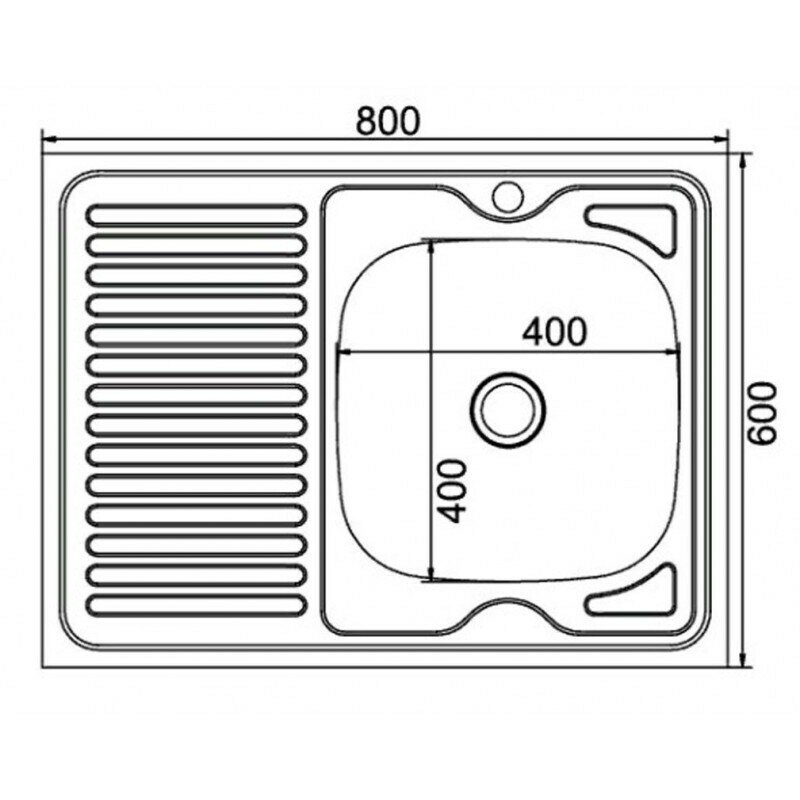 Мойка кухонная MIXLINE 527971, накладная, толщина 0.4 мм, 80х60х16 см, правая, выпуск 1 1/2" MIXLINE