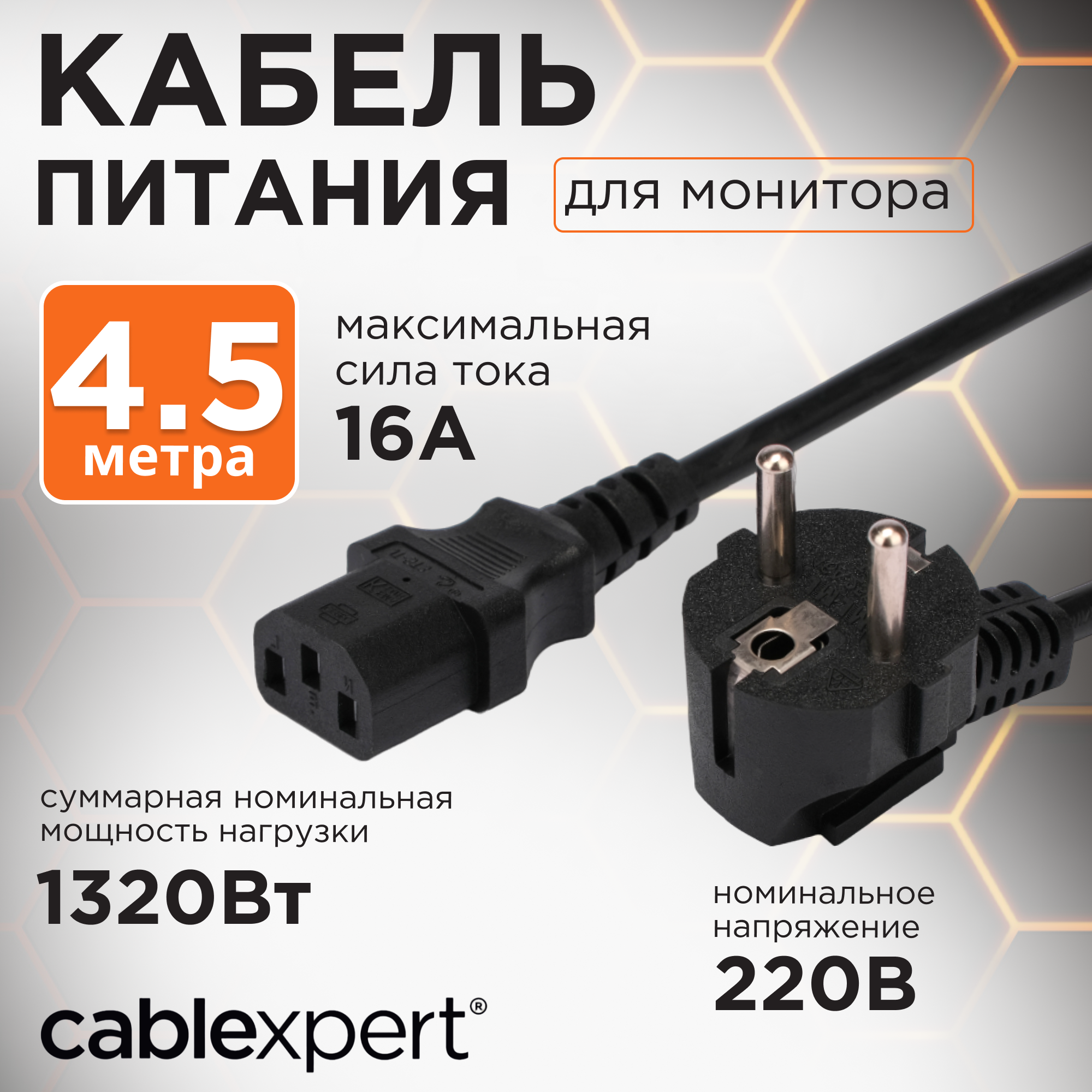 Кабель питания Компьютер-розетка 4.5 м (вилка CEE 7/7 - вилка C13, 3x0.5 мм2, 6A)