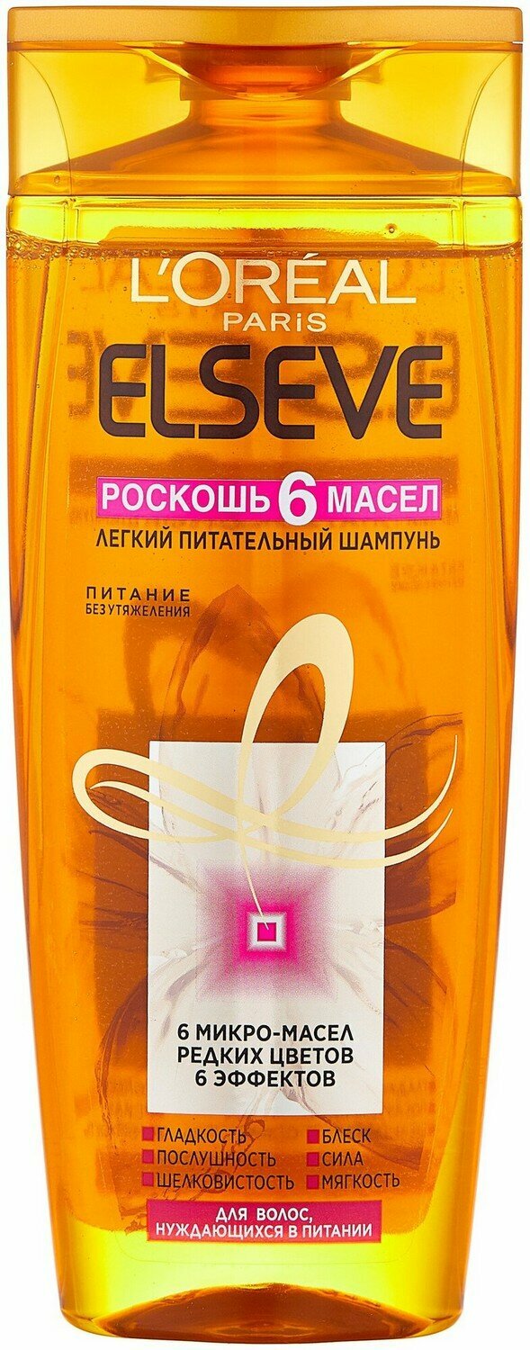 L'Oreal Paris шампунь Elseve Роскошь 6 масел Легкий Питательный для волос, нуждающихся в питании, 400 мл