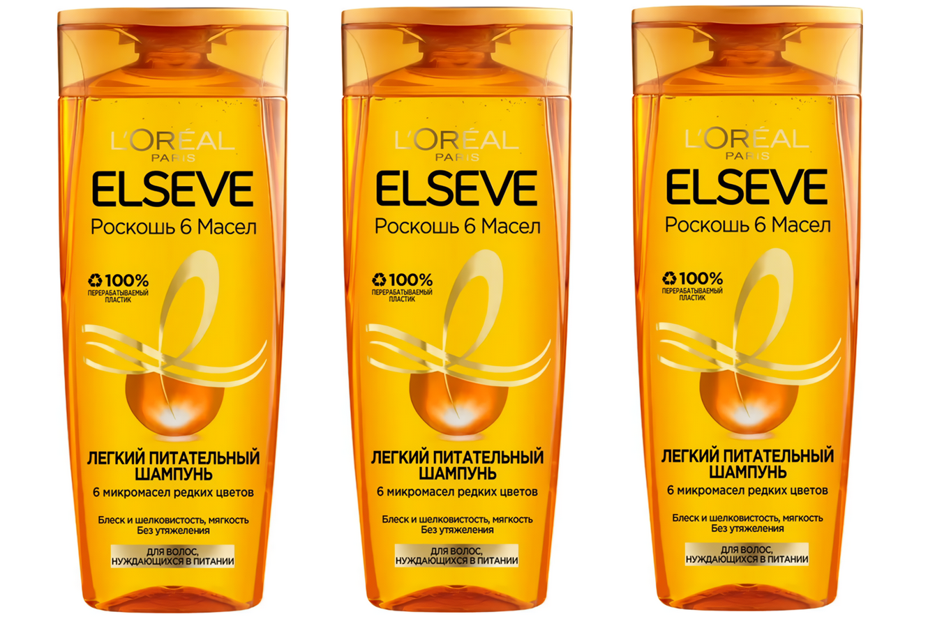 L'Oreal Paris Шампунь Elseve Роскошь 6 масел Легкий Питательный для сухих волос, 250 мл - 3 шт