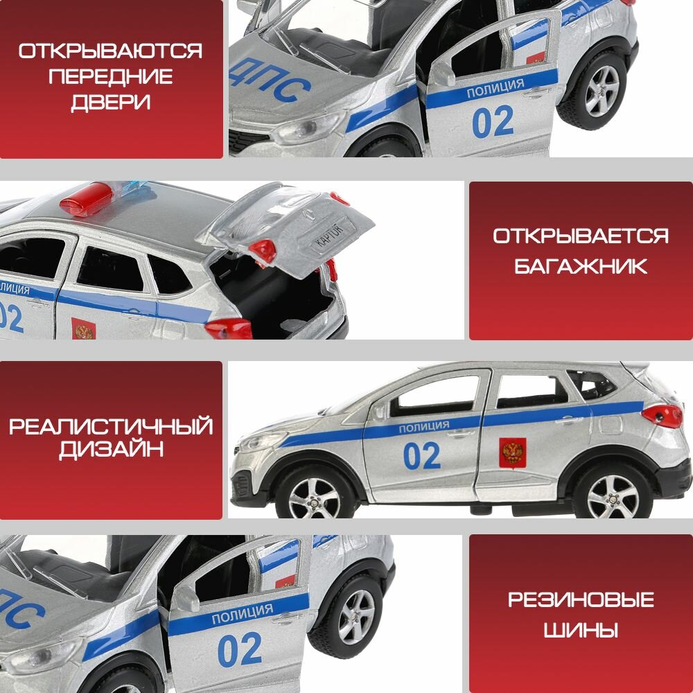Машина металл Renault Kaptur Полиция, 12 см, (дв., багаж.,) инерц., в коробке