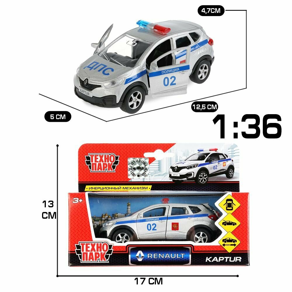 Машина инерционная Технопарк металлическая, Renault Kaptur Полиция 12 см, открываются двери (SB-18-20-RK-P-WB)