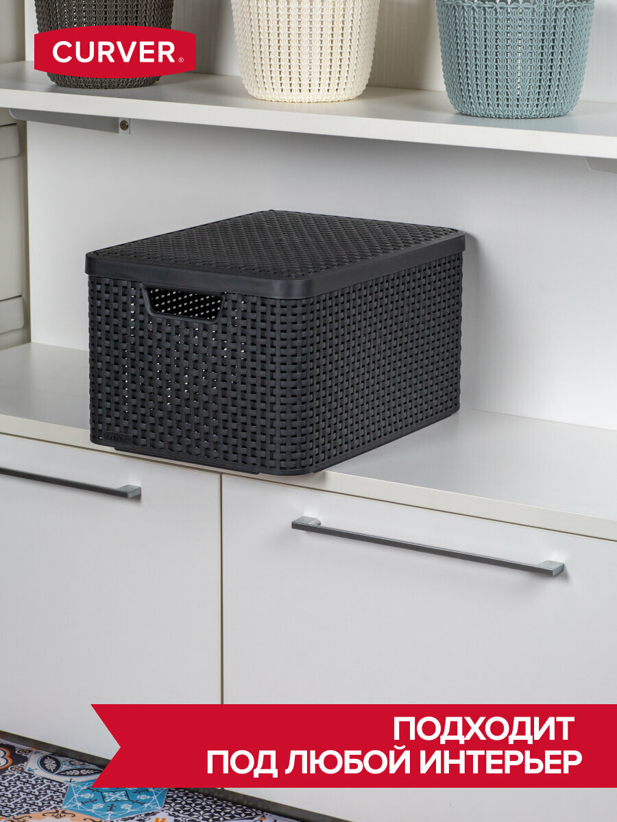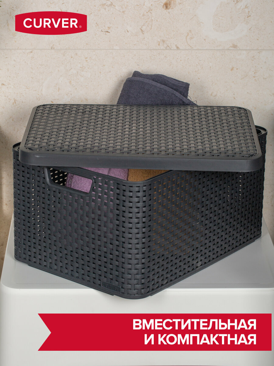 Корзина для хранения с крышкой, RATTAN STYLE BOX L 30л, пластик, тёмно-коричневая