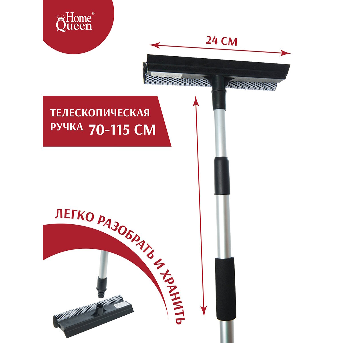Стекломой HOMEQUEEN 67-115х24 см с алюминиевой телескопической ручкой