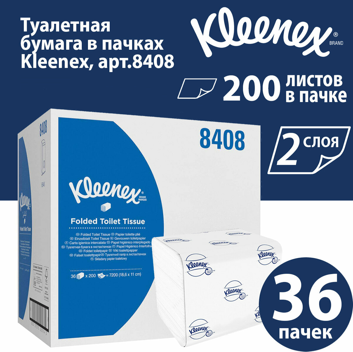 Бумага туалетная листовая KIMBERLY-CLARK Kleenex 2-слойная 36 пачек по 200 листов (артикул производителя 8408)