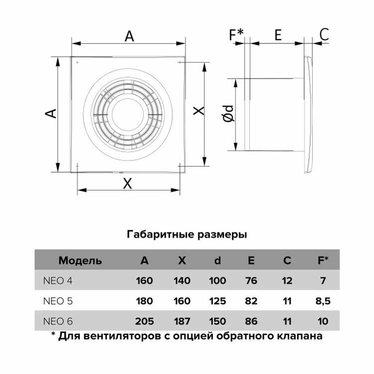 Вентилятор осевой вытяжной NEO 6S C с обратным клапаном D150