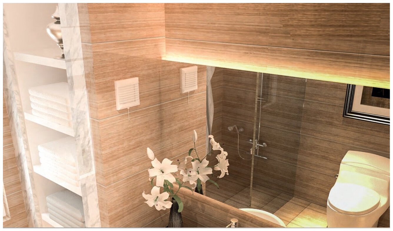 | Плюсы: | Малошумный. Датчик влажности. Возможность принудительного вкл/отключения |