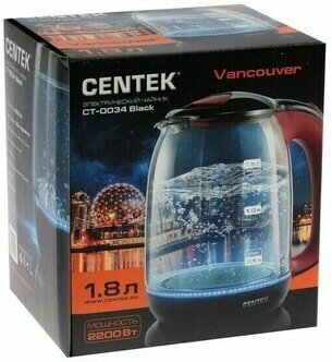 Чайник CENTEK CT-0034 Black Vancouver (1.8л, стекло, LED-подсветка)