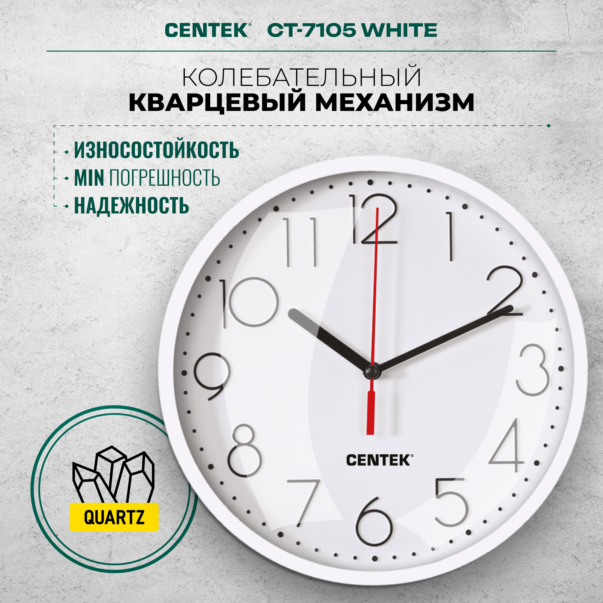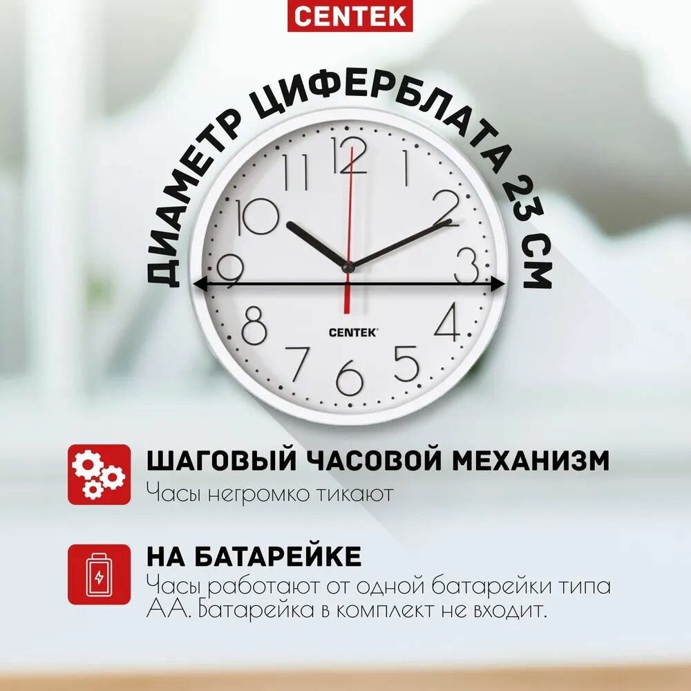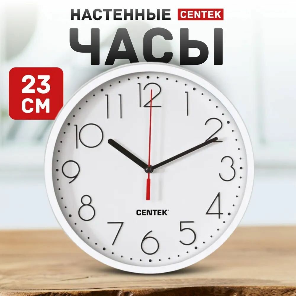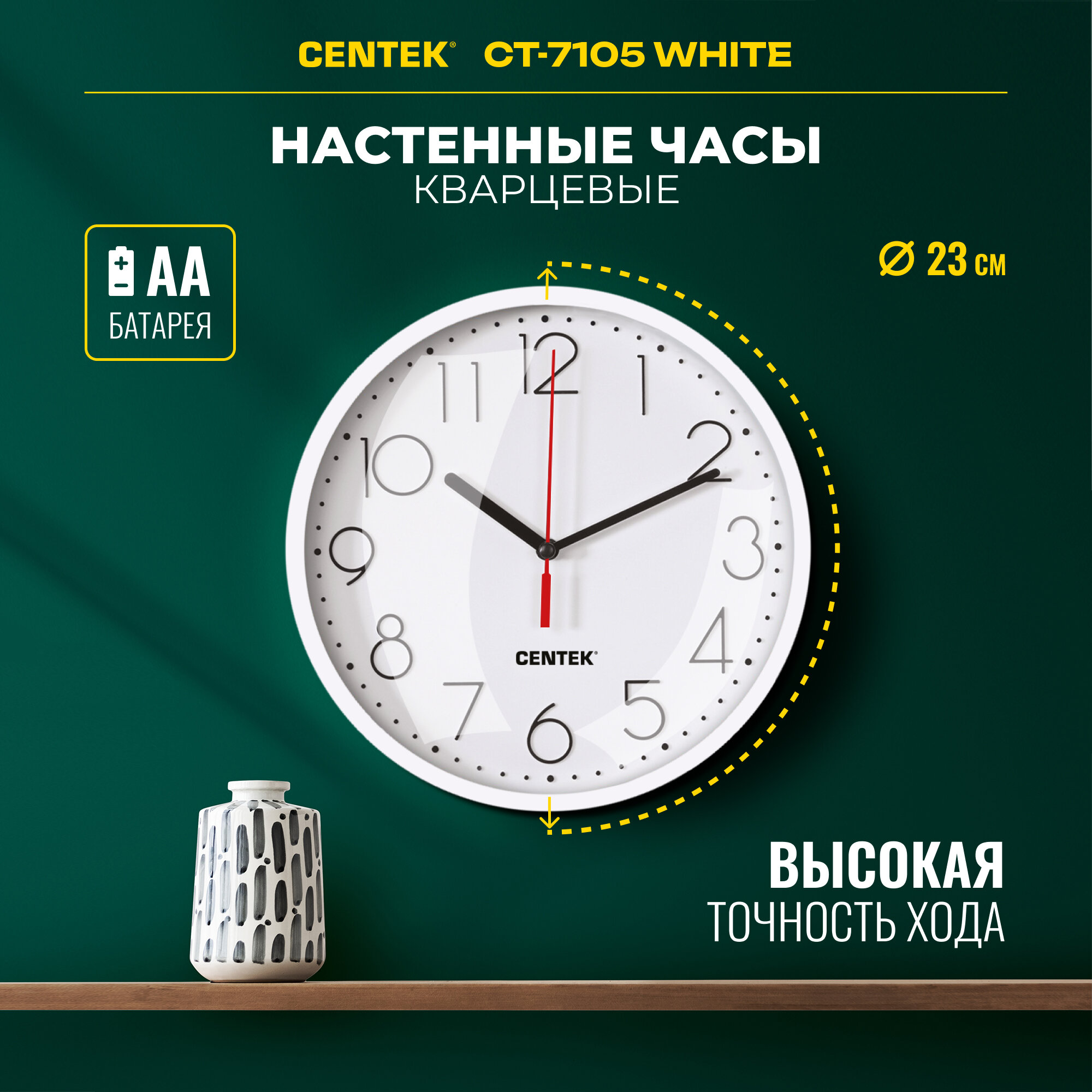 Часы настенные CENTEK СТ-7105 White (белый) 23 см диам., круг, шаговый ход, кварцевый механизм
