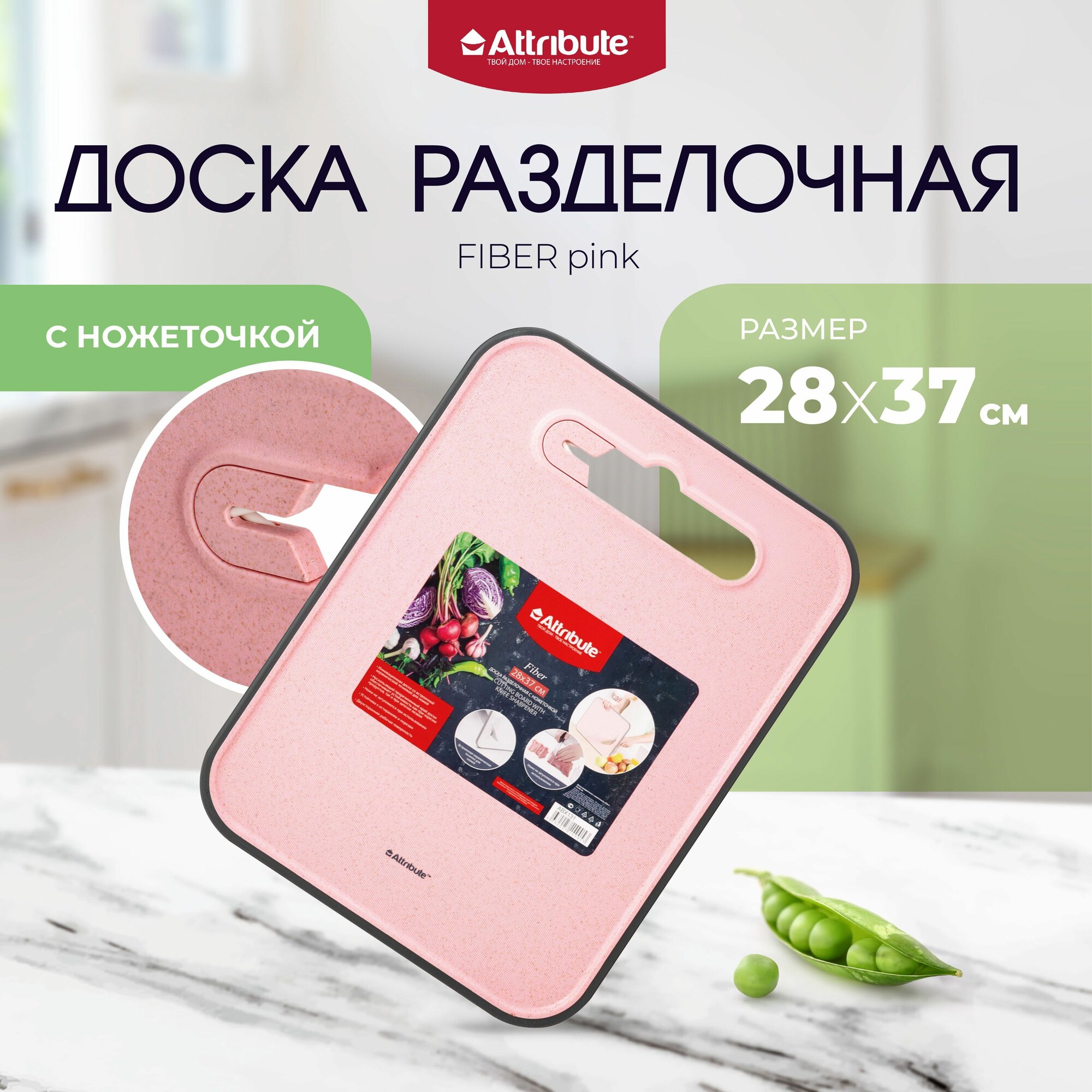 Доска разделочная ATTRIBUTE ABX133 FIBER 28x37 см, с ножеточкой, розовый